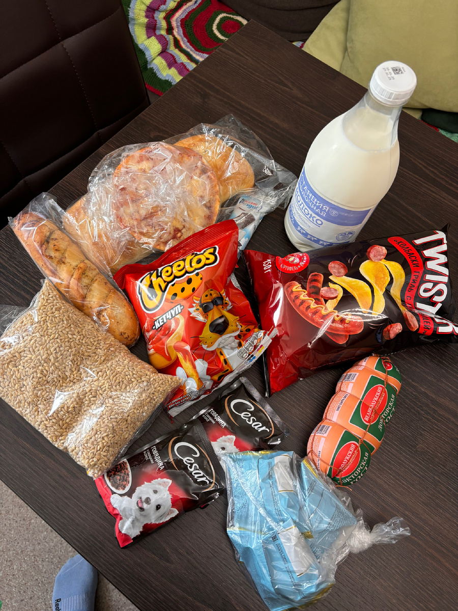 В магазине небольшую покупку сделала, вообще мне только хлеб нужен был. Ну как обычно.
