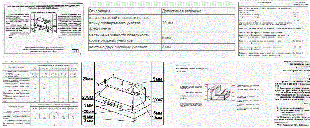 Привет! Решил построить загородный коттедж. Рекомендуют проект дома в альпийском стиле, однако опыт строительства в частности фундаментов для таких у меня мал, поэтому хочу узнать у постоянных посетителей нашего форума допустимые отклонения фундаментов. При каких отклонениях фундамент может быть запрещён к эксплуатации? Буду всем очень благодарен за полезные советы. Допустимые отклонения фундаментов могут быть следующими: основные параметры фундаментов могут отклоняться в большую и меньшую сторону на 30 мм, не больше. Отклонения высотных отметок в сторону увеличения так же не должны превышать указанную величину. Размеры колодцев могут отклоняться не больше чем на плюс 20 мм. А так конечно лучше не иметь в фундаменте вообще никаких отклонений.