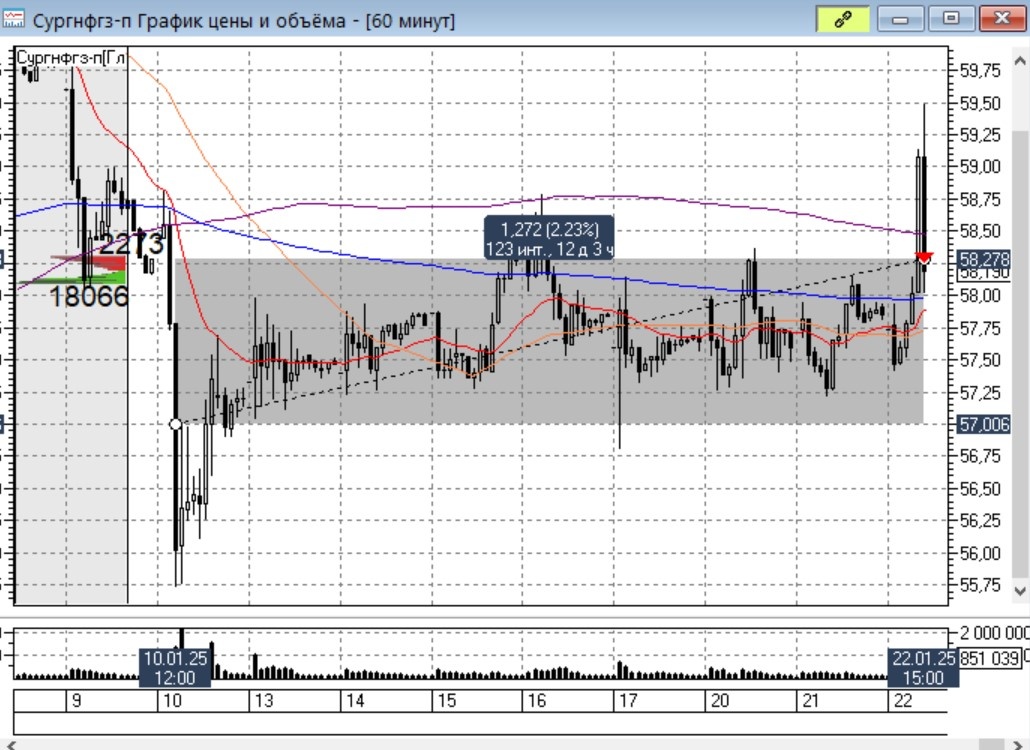 Сегодня на импульсе цены префов Сургутнефтегаза поставили стоп-ордер на коррекцию цены. Увы, цена не пошла дальше и сделку закрыли с профитом 2,2%. Пополнили облигационный портфель флоатером ПАО "ТГК-14" 001Р-04 (RU000A10AEE2), купонный доход КС+6,5, погашение 07.06.27. Купон ежемесячный, ближайший 17 февраля.