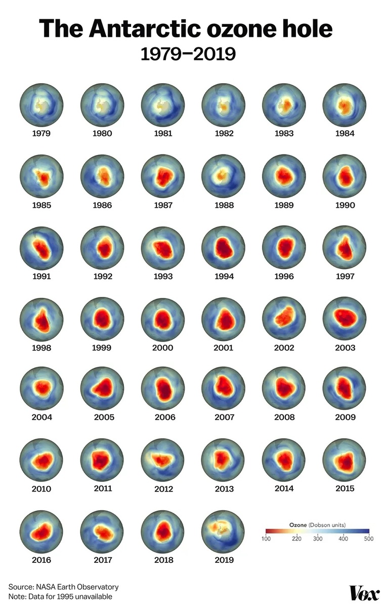 Ответ: Монреальский протокол по веществам, разрушающим озоновый слой. 📖Исторический экскурс: В 1985 году исследователи атмосферы в Антарктиде заметили кое-что странное. В течение десятилетий они измеряли толщину озонового слоя в верхних слоях атмосферы, который отражает большую часть солнечного излучения. Начиная с 1970-х годов озоновый слой начал стремительно истончаться, и, по прогнозам ученых, должен был полностью исчезнуть к середине 1980-х. Неприятное открытие вызвало тревогу во всем мире и беспрецедентные по своим масштабам действия. Международное сообщество мобилизовало свои ресурсы — научные, экономические, дипломатические, для развертывания кампании по запрету хлорфторуглеродов (ХФУ), главной причины уничтожения озонового слоя. Монреальский протокол, чья основная цель - выведения из обращения ХФУ, вступил в силу в 1989 году, а уже в 1990-х производство новых вредных веществ было фактически остановлено. Поэтапный отказ от существующих устройств, в которых использовались ХФУ,