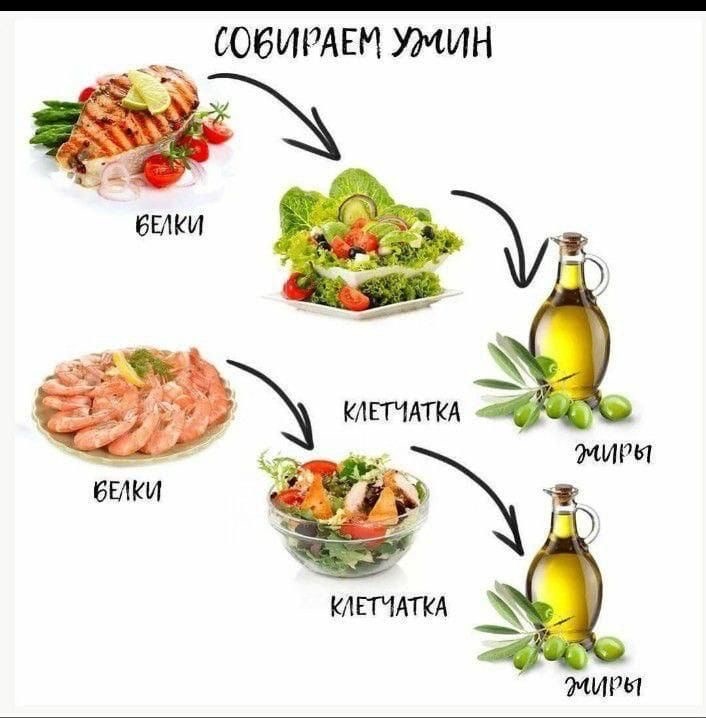 ✅️ *УЖИН* ▫️нежирное мясо (куриное филе, нежирная говядина, индейка, кролик) приготовленное на гриле/ на пару/ в духовке с овощным салатом ▫️рыба и овощной салат ▫️омлет с овощами ▫️салат с мясом/рыбой, овощами, сметаной