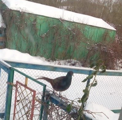 22 января 2025 года Здравствуйте, друзья! Если вам показалось, что на фото ниже какой-нибудь зоопарк, то вам показалось. Это палисадник обычного дома в моей любимой Тверской области. Просто фото сделано через окно. Дело в том, что у моей подруги, той с которой мы по Москве в эти выходные гуляли "завёлся" дикий фазан. Просто прилетел откуда-то и живет около дома. Судя по скромному оперению, это барышня, впрочем паспорт она не предъявляла. Как любая уважающая себя курица (фазаны, они относятся к куриным), клюёт зерно и любую крупу. Никуда улетать не собирается, "нас и здесь неплохо кормят". Так и живёт посреди деревни. А прошлой зимой неожиданно рано прилетел аист, и тоже жил и столовался возле дома, пока лягушки не заквакали. Так то аистов у нас много. Людей они совершенно не боятся, а вот собак опасаются. До того, как поселиться в Тверской области, мне казалось, что аисты живут в более тёплых широтах, оказалось, что нет. Достаточно суровый климат Верхневолжья им вполне подходит, успев