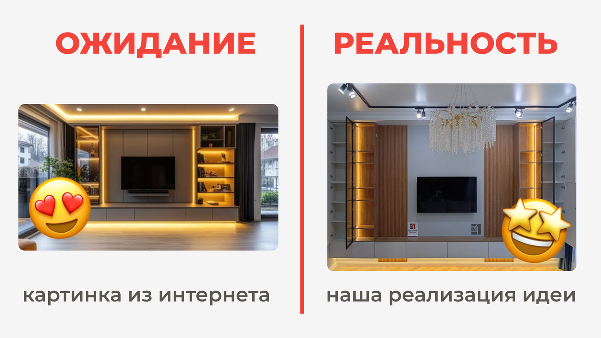 На фото — наш реальный проект, который команда BMF1 специально реализовала для клиента. Фото готовой мебели сделал наш монтажник. Все чисто: без обработки или фотошопа. Мы честны с нашими клиентами и такие задачи тоже уже привыкли решать – за нас говорят более 10 000 выполненных изделий. И именно поэтому в BMF1 получается красивая мебель, ведь мы можем заменить даже суперских дизайнеров.