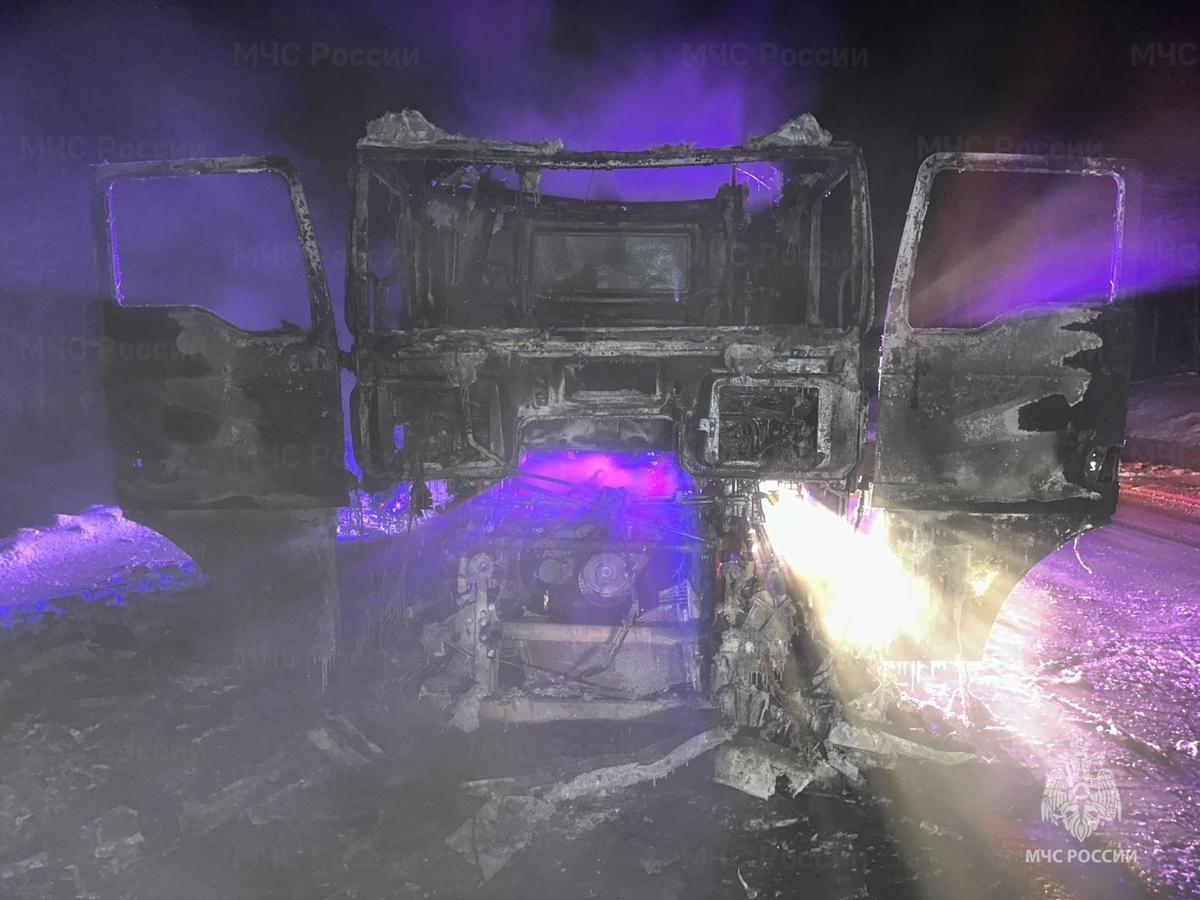 В тот же вечер, 22 января, воспламенился грузовик на трассе Большой Невер – Тында. Открытое горение пожарным удалось потушить за 24 минуты.
