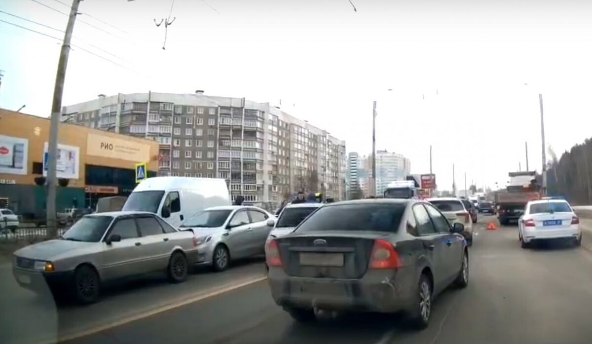 На улице Велижской в сторону Большой Воробьевской образовался «паровозик» как минимум из трех легковушек.