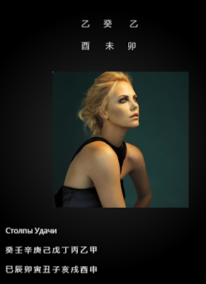 Почему некоторым людям трудно оставаться в долговременных отношениях? Какие признаки в натальной карте указывают на возможные сложности или нежелание вступать в брак? В частности, это касается публичных личностей, которые пользуются популярностью и нередко сталкиваются с чрезмерным интересом со стороны представителей противоположного пола. Несмотря на обилие вариантов, они не могут или не хотят поддерживать отношения. Давайте проанализируем отношения с т.з БаЦзы. Перед нами карта Шарлиз Терон Она родилась в день 乙酉 乙酉 имеют в своём характере склонность к нетерпению. Они не всегда следуют доводам рассудка Люди такого дня, обладают двойственной натурой. С одной стороны, они любят, когда ими руководят, иначе они не ценят вторую половину, с другой, излишний контроль они воспринимают как ограничение свободы и начинают сопротивляться. Поэтому их нрав является бунтарским и разрушительным. Но в коллективе они обычно безоговорочно выполняют указания руководителей.. Столп 乙酉 - это цветение Перс