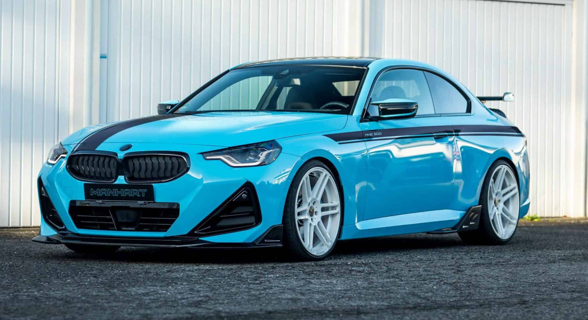 Когда Manhart не занят работой над автомобилями M, он время от времени модернизирует модели M Performance. Так и произошло с версией M240i xDrive. Это единственный вариант, доступный в Европе, где BMW, к сожалению, прекратила выпуск заднеприводной модели в прошлом году. У не совсем M2 под капотом всё ещё стоит двигатель «B58», но немецкий тюнер приблизил его мощность к «S58». С пакетом Manhart MH2 500 II турбированный рядный шестицилиндровый двигатель теперь выдаёт мясистые 496 л. с. Это на 23 лошадиных силы больше, чем у последнего M2. С 633 Нм крутящий момент увеличивается на существенные 133 Нм по сравнению с M2 2025 года, оснащённым автоматической коробкой передач. Ещё есть место для большего, поскольку пакеты stage 2 и stage 3 поставляются с дополнительной мощью. В дополнение к переделке 3,0-литрового двигателя, Manhart также радикально переделывает внешность M240i. Спортивное купе получает эффектную пастельно-голубую плёнку кузова. Аэродинамический комплект из углеродного волокн