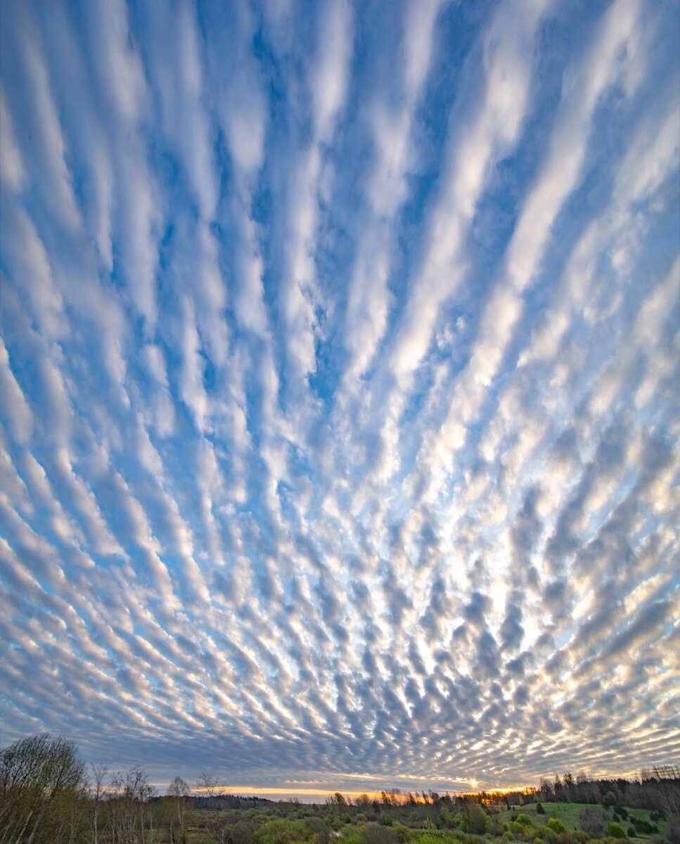 "Небо в полоску" Сегодня без пейзажей. Просто немного неба... В поисках интересных мест для съемок периодически приходится наблюдать необычные облака. Много разных видов довелось увидеть. Пришлось даже собрать небесные фотографии в отдельном альбоме ВК. Кому интересно загляните: https://vk.com/album1678810_278979586 Оказывается большинство облаков имеют названия и описаны в международном атласе облаков. Сегодняшний вариант снимал весной в Псковской области. Называются такие облака полосатые слоисто-кучевые.