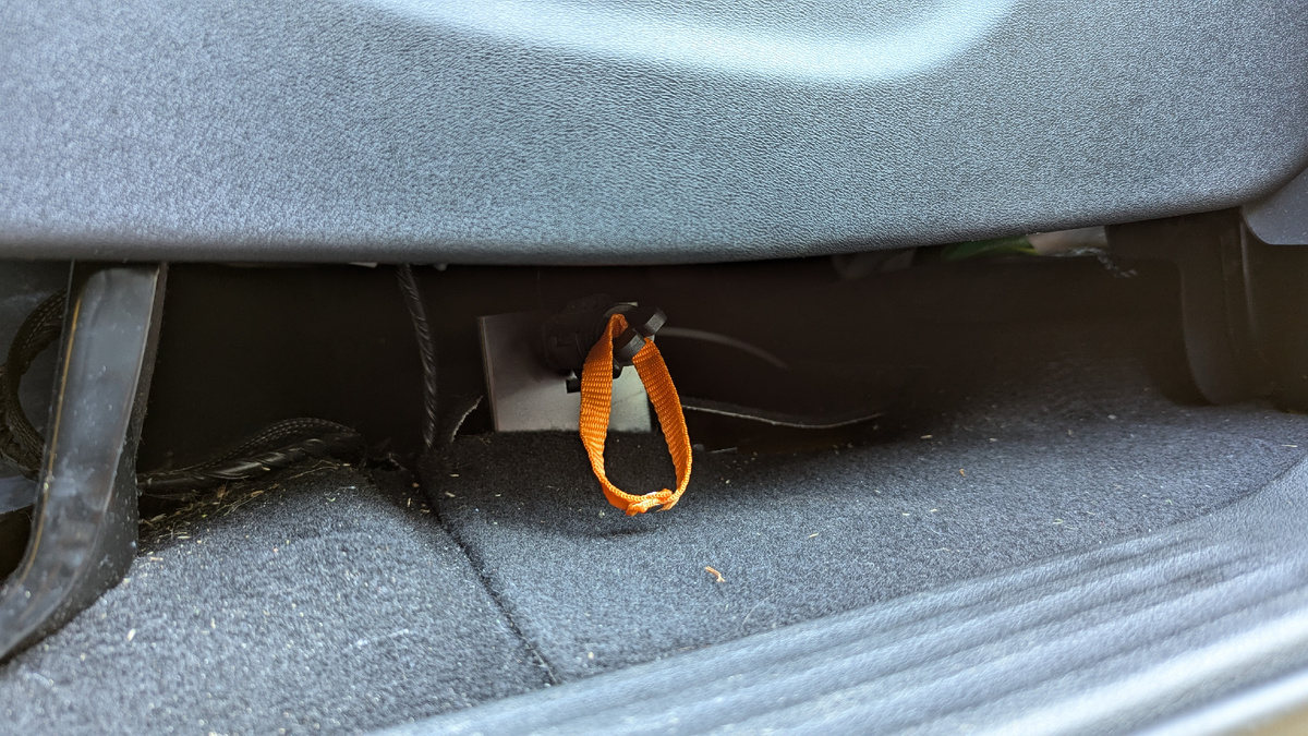 Одним из часто задаваемых вопросов считается тот, в котором интересуются элементами интерьера: «Что это за оранжевая петля под сиденьем водителя? Активатор катапульты?» Дети даже подумали, что это игрушка, но, к счастью, не успели с ней поиграть. Кто-то говорит, что это надо выдернуть, как чеку у гранаты, если вдруг машина сломается, и в этом есть некая правдивость. На самом деле, эта петля служит маркером к устройству, которое может помочь автомобилю продолжать движение, если случится непредвиденная ситуация, например, сядет аккумулятор, закончится топливо или кто-то сглазит машину. Если так произойдет, то придется воспользоваться этой оранжевой петлей, обозначающей рычаг, и вот как с этим всем следует поступить в случае, когда машина не заводится, а рычаг коробки находится в положении P. Чтобы снять трансмиссию с паркинга, нужно найти рычаг механизма разблокировки под водительским креслом благодаря яркому оранжевому цвету. Затем поворачиваем торцевую часть рычага против часовой стрел