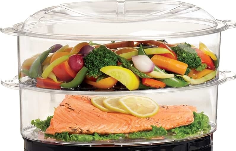 Приготовление пищи на пару – это не только самый щадящий способ обработки продуктов, но и возможность сохранить максимум полезных веществ и натуральный вкус блюд. Давайте узнаем, как сделать рацион диабетика разнообразным, вкусным и, конечно же, полезным! ВИДЫ ПАРОВАРОК: мантоварка с вставляемыми ярусами, пластиковая пароварка для микроволновки, вкладыш с дырочками в мультипекарь, электрическая пароварка с ярусами. • Минимум жира: Приготовление на пару исключает использование масла, что помогает контролировать потребление жиров и калорий, что особенно важно для людей с диабетом и лишним весом. • Сохранение витаминов и минералов: Паровая обработка сохраняет больше полезных веществ в продуктах, чем жарка или варка, так как они не вывариваются в воду. • Низкий гликемический индекс: Пароварка помогает сохранить натуральную структуру продуктов, что способствует более медленному повышению уровня сахара в крови, снижается общий гликемический индекс съеденной пищи. • Натуральный вкус: Блюда,