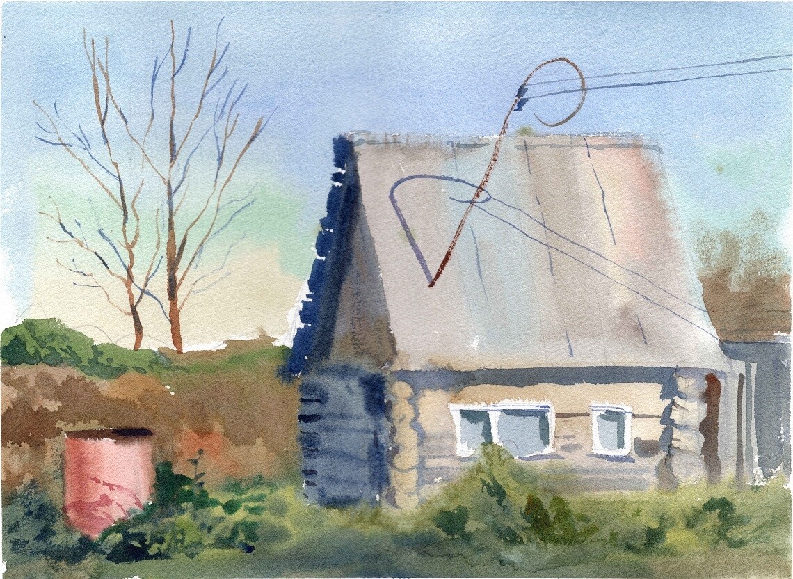 Моим любимым мотивом в пейзаже всегда была архитектура. Поэтому, с тех пор, как я начал рисовать на пленэрах, я всегда старался рисовать домики, да и в чужих работах меня прежде всего привлекают нарисованные дома. (ниже несколько моих рисунков) Конечно, я никак не могу назвать себя мастером в рисовании домов, но пару нюансов я уловил и хотел бы ими поделиться 1. Дом НЕ коробка! Рисовать в линейной перспективе начинают не с домов, а с чего попроще - коробки, книги, шахматные доски и прочее. И после некоторой практики приходишь к определённому шаблону изображения кубической формы в перспективе, примерно к такому И когда на пленэре стоит задача нарисовать дом, преподаватель тебе говорит "Вспомни, как мы рисовали коробку. Дом это та же коробка!" Дом, конечно, коробка, спору нет. Но есть одно существенное отличие: дом это ОГРОМНАЯ коробка, которая намного больше художника. А неопытный художник пытается рисовать дом тем же шаблоном, к которому уже привык и в результате терпит неудачу.