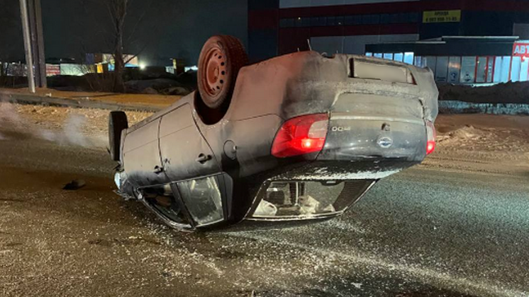В Новосибирске машина перевернулась на крышу при наезде на островок безопасности