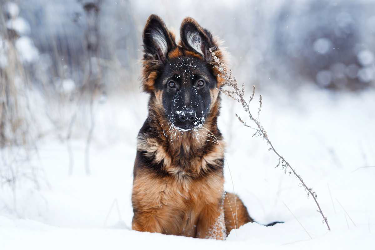 Поскольку первое время Цезарь передвигался не очень хорошо, то Лена и Алексей усаживали его прямо в снег, который он очень любил, и разговаривали с ним, стоя рядом.