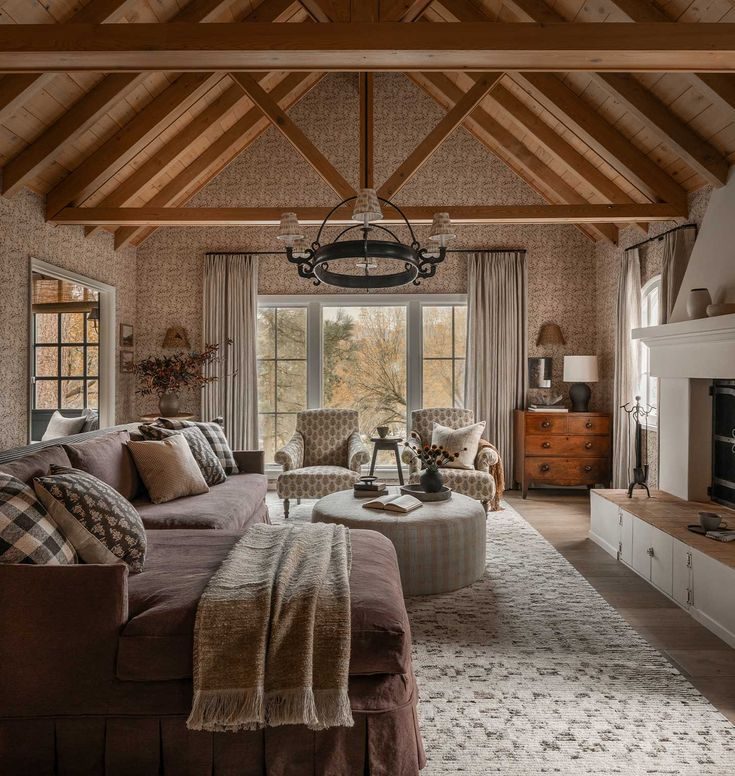 Потолок часто оформляется деревянными балками, которые создают ощущение защищенности и уюта. Это не просто элементы конструкции — это часть вашего дома, которая дышит историей и характером.