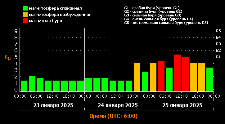 Специалисты Лаборатории солнечной астрономии ИКИ и ИСЗФ представили прогноз магнитных бурь на ближайшие дни. Геомагнитные возмущения начнутся уже 25 января. Буря затронет Омск с 03:00 до 15:00 и будет считаться слабой, с уровнем G1. Магнитные бури могут влиять на самочувствие метеозависимых людей. В период их активности рекомендуется избегать физических нагрузок, пить больше жидкости и высыпаться. Фото: сайт лаборатории солнечной астрономии ИКИ и ИСЗФ.