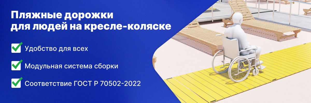 С каждым годом растёт число регионов, которые начинают заботится о доступности для МГН необходимых услуг, а также мест отдыха. Команда Тифлоцентра представила пляжные дорожки, которые обеспечат комфортный и безопасный доступ к воде, зонам отдыха, раздевалкам, туалетам и медицинским пунктам для людей с ОВЗ, включая людей с инвалидностью на креслах-колясках. Многие общественные пляжи по-прежнему остаются неприспособленными для самостоятельного посещения людьми с нарушениями зрения и ОДА. В первую очередь необходимо обустроить путь к акватории и другим объектам. Покрытие для пляжей, изготовленное компанией «Вертикаль», обладают следующими положительными качествами для адаптации зоны отдыха у воды: Один модуль дорожки — это прямоугольник с фактурной поверхностью и шириной 1,2 м, благодаря которой по дорожке могут передвигаться люди с поражением опорно-двигательного аппарата и на кресле-коляске, а также слабовидящие и полностью слепые. Для монтажа дорожек применяются тросы в силиконовой обо