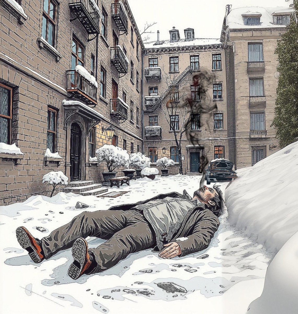 Вокруг уже собралось несколько человек, и подбежала та самая собака. Хозяин собаки уже вовсю пытался нащупать пульс, но, лишь