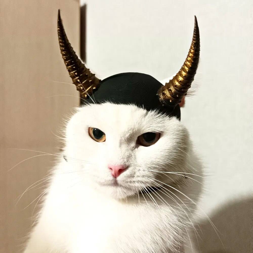 Продавец уверяет, что пушистые будут выглядеть в них брутально и грозно. Для котят покупать не стоит - рога для них слишком тяжелые.Выводим пушистых дьяволов на чистую воду.