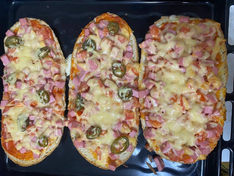 Здравствуйте, дорогие читатели! Сегодня мы с вами приготовим, быструю и вкусную пиццу для ленивых! Это блюдо отлично подойдет, для тех кто не хочет заморачиваться, но хочет вкусно поесть, а также когда нужно что-то быстро приготовить чтобы перекусить. Ингредиенты: Способ приготовления: 1. Нарезаем колбасу кубиками и отправляем в кастрюлю. 2. Далее также нарезаем помидоры. 3. После этого берем сыр и натираем его на крупной терке и часть (чуть меньше половины) высыпаем в кастрюлю. 4. Далее ко всем ингредиентам добавляем яйцо для того, чтобы начинка была сочнее, все перемешиваем. 5. Батон вдоль разрезаем на 3 части. 6. Затем батон смазываем майонезом и кетчупом, мой муж любит острое поэтому ему добавляю соус хабанеро. (Тут уже зависит от вас, что больше любите можно добавить горчицу или аджику) И начинаем выкладывать начинку, на начинку я выкладываю кружочки перчика халапеньо, по той же причине что и соус. Сверху все посыпаем тертым сыром и отправляем все это дело в духовку запекаться п