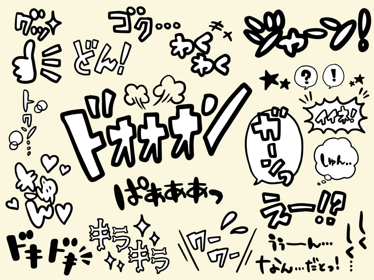 Мы привыкли к тому, что звук – это то, что мы слышим ушами, но в манге – это то, что мы «слышим» глазами. Важно не только то, из каких букв или слогов он состоит, но и его визуальная составляющая. Они напрямую влияют на восприятие читателей и создаваемую в манге атмосферу. Важно, чтобы он визуально соотносился с ситуацией, в которой используется (резкие и прямые линии в, например, напряжённых моментах или округлые и мягкие – в повседневных).