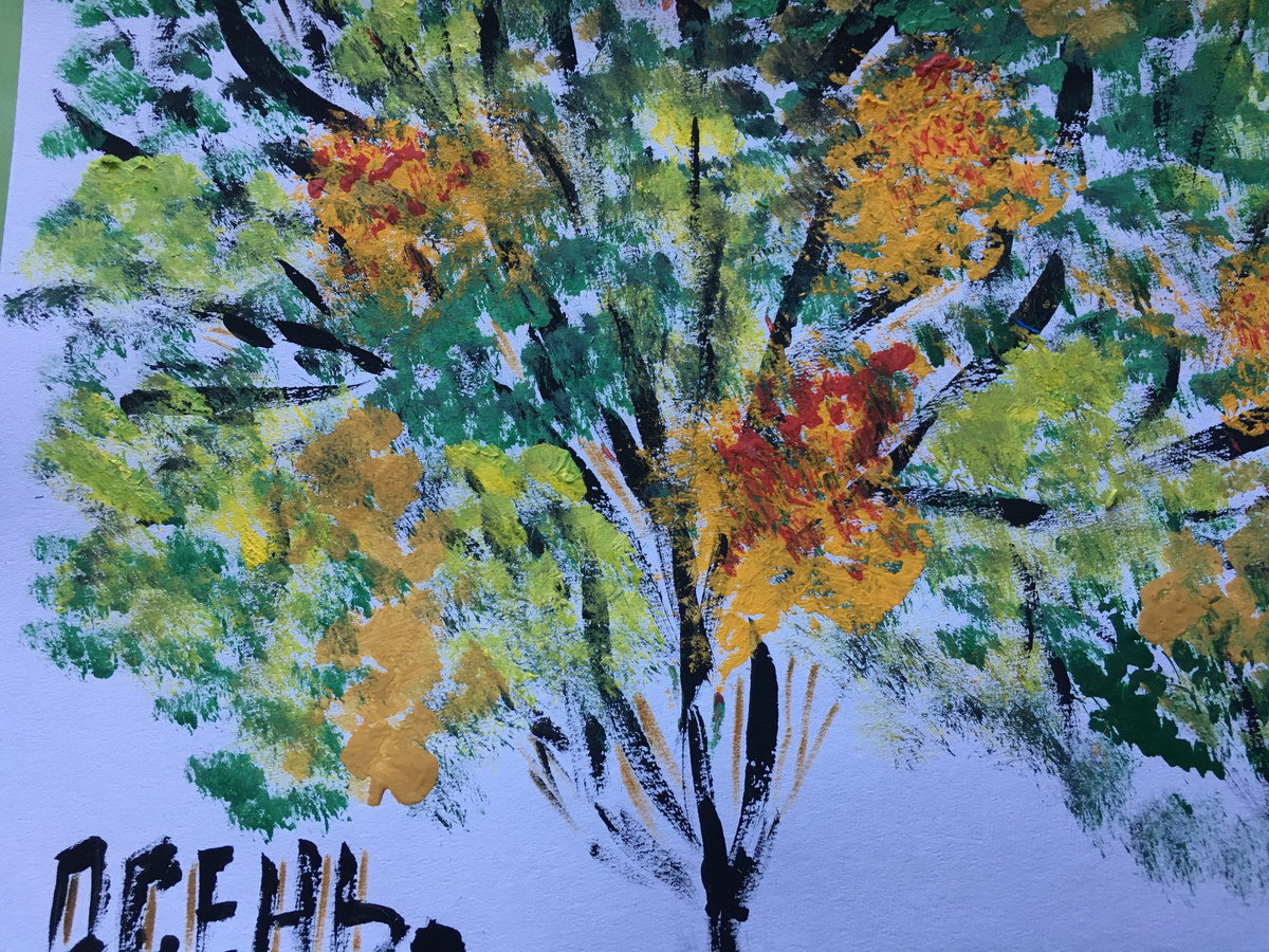 Всем, всем приветики! Никогда не думала- не гадала, что возьму в руки кисточку и буду малевать в возрасте 67 лет. А с другой стороны Малевичу можно, а я чем хуже. В моих начинаниях тоже можно углядеть глубокий смысл и таинственную загадку, идущую от стареющего сердца и сохраненных осколков детской души. Конечно, если без философии , то просто захотелось порисовать по-детски в порыве творческого поиска новых увлечений. Сказано- сделано и понеслось. Вся испачкалась в краске, нашлепала точки на пол и заляпала столик отпечатками. Однако, это не остановило пенсионерку, которая почувствовала себя молодой художницей. Процесс затянул, а кухня в это время простаивает. Пылюку не убираю. Муж про себя молчит. Терпит выходку. Впала в детство тетенька . Бывает, когда тебе за ... и не такое. Хорошо, что быстро закончилась плотная бумага, лежащая много лет без надобности. Но это не остановило и еще нашла парочку в другом месте . Скреативила пейзажик сереньки