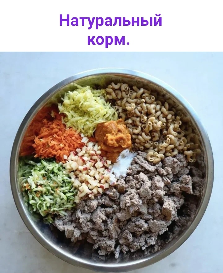 Сегодня рассмотрим правила кормления собак натуральными кормами, по другому такие рационы называются домашними. К таким кормам прежде всего относят мясо и субпродукты, кости, рыбу, крупы, овощи, фрукты, молочные продукты и яйца. Ошибочно многие владельцы животных к домашнему рациону относят еду со стола, приготовленную для людей. Хотя ингредиенты в общем используются почти одни и те же для кормления собак такие рационы не подходят. Прежде всего в еде для человека слишком много соли и специй, которые вредны для собак. Кроме этого строго запрещены жареные, копчёные, острые и жирные продукты, так как организм хищников не приспособлен их полноценно переваривать, зато способен вызывать острые воспалительные процессы в кишечнике и других внутренних органах.