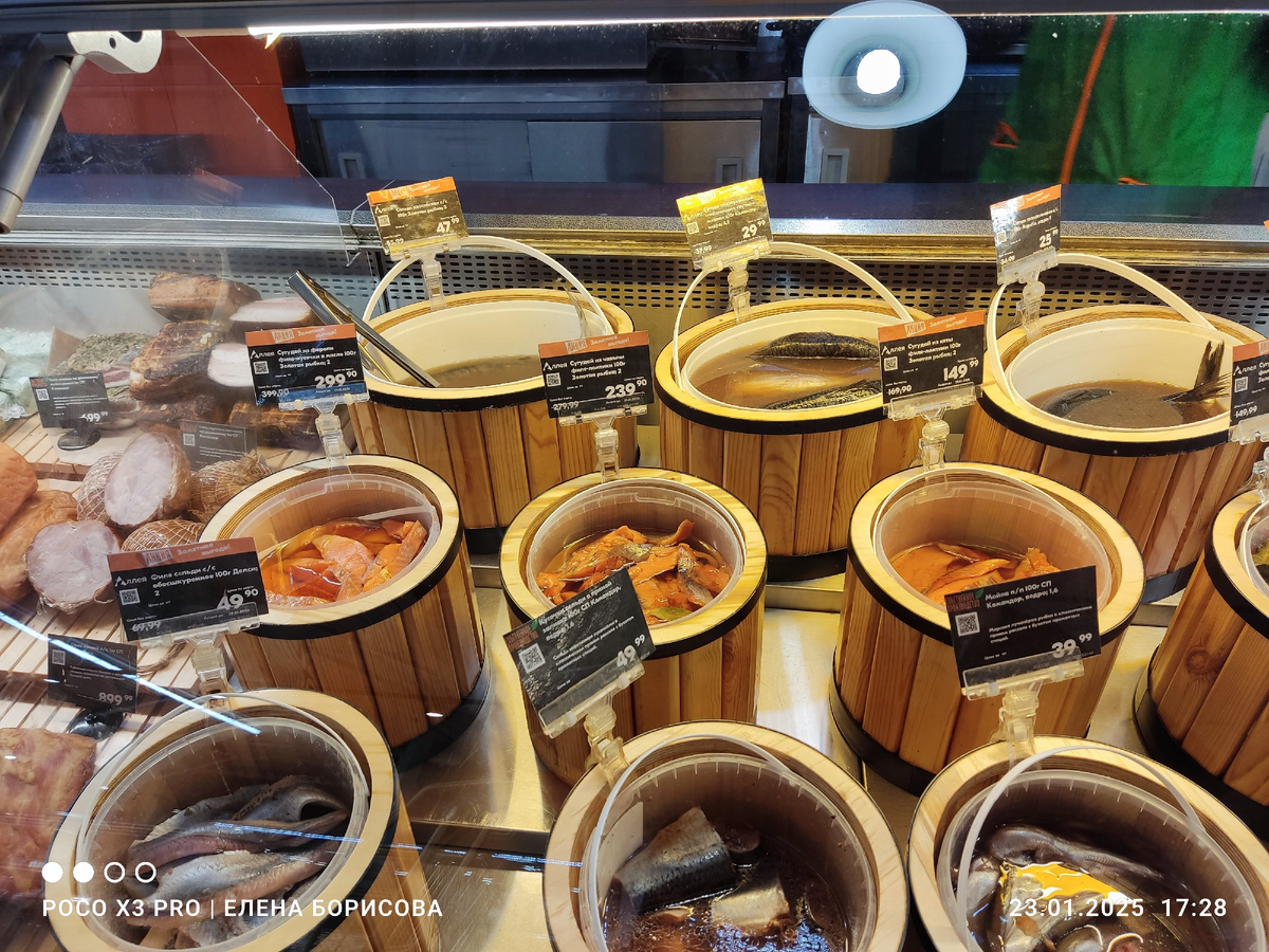 Мне нравится рыба, и неважно, морская она или речная. Я люблю её в любом виде: жареную, солёную, в виде строганины или запечённую — в общем, в любом, как говорится, формате. Евгений меня вчера повёз в магазин «Аллея». Продуктов купить и мне, да и ему кое-что нужно было взять, сегодня ранним утром он уехал на Север. Мы планировали купить картошку и солёную рыбку на ужин, захотелось так. В магазине было много разнообразной рыбы, но моё внимание привлекла каспийская сельдь. Я никогда раньше не пробовала такую и даже не слышала о ней. Цена 478 рублей за килограмм, в сравнении с обычной селедкой дороже в два раза. Этот вид рыб часто встречается в водах реки Ахтуба и отличается внушительными размерами. Взрослая особь может достигать в длину 40 сантиметров, а вес одной рыбы составляет в среднем около 1 килограмма. Мне попалась 762 грамма. Не очень красивая на вид? Голова огромная. Каспийская сельдь — это хищник, который питается мелкой рыбой, ракообразными, моллюсками, личинками и другими вод