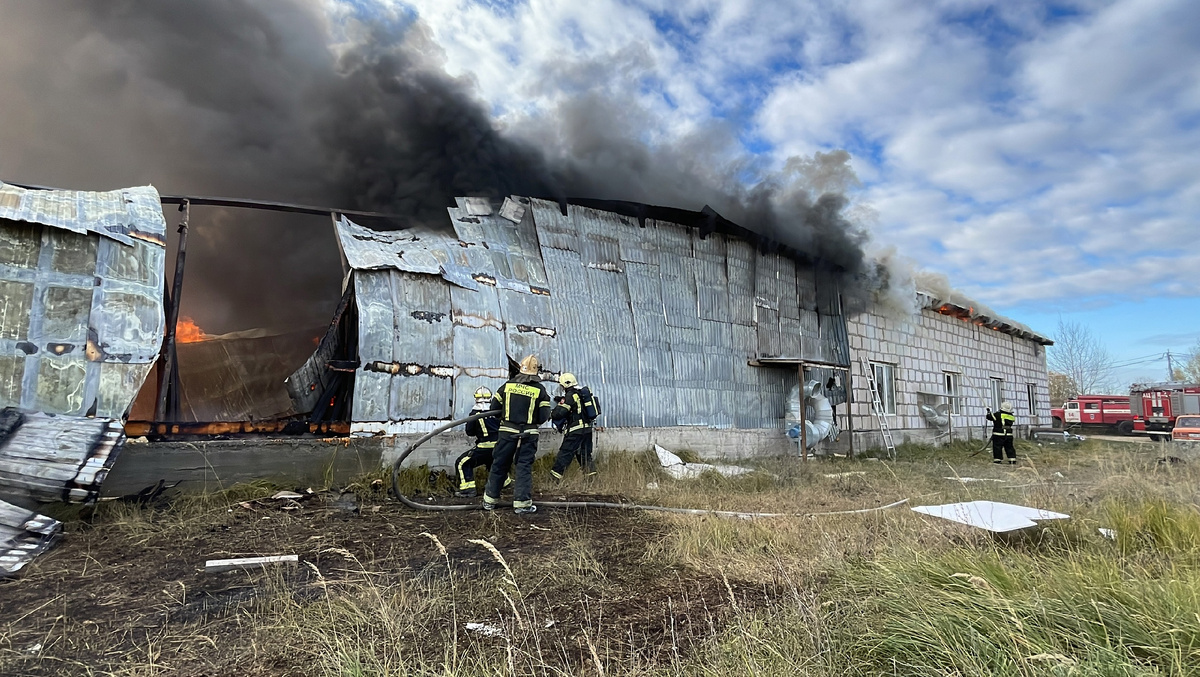 20 октября 2024 года запомнится жителям поселка Ручей Ковровского района на долго: воскресным утром поселок заволокло гарью, на его окраине в небо вздымался огромный столб густого черного дым, его было видно больше чем за 10 километров. Первое сообщение о пожаре производственных ангаров в поселке Ручей на центральный пульт пожарной связи 4 пожарно-спасательного отряда ФПС ГПС Главного управления МЧС России по Владимирской области поступило в 10-16. В 10-17 к месту пожара диспетчер направила отделения 14 ПСЧ 4 ПСО ФПС ГПС Главного управления МЧС России по Владимирской области, команду военизированной пожарной охраны ИК-7, Муниципальный пожарный пост №1 - всего 4 отделения. Первое пожарно-спасательное подразделение 14 пожарно-спасательной части прибыло к месту пожара в 10:26. Руководитель тушения пожара помощник начальника дежурной смены службы пожаротушения 4 ПСО Денис Дмитраков передал информацию на центральный пункт пожарной связи: «По внешним признакам наблюдается открытое горен