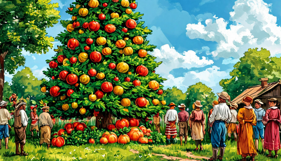 В тихой деревушке, затерянной среди бескрайних полей и густых лесов, жил-был мужичок по имени Кузьма. Мужичок он был не то чтобы примечательный, скорее, наоборот — самый обыкновенный. Но вот беда — очень уж Кузьма любил всякие диковинки. Однажды, гуляя по лесу, он нашёл маленькую ёлочку и решил посадить её у себя во дворе, чтобы она радовала глаз.