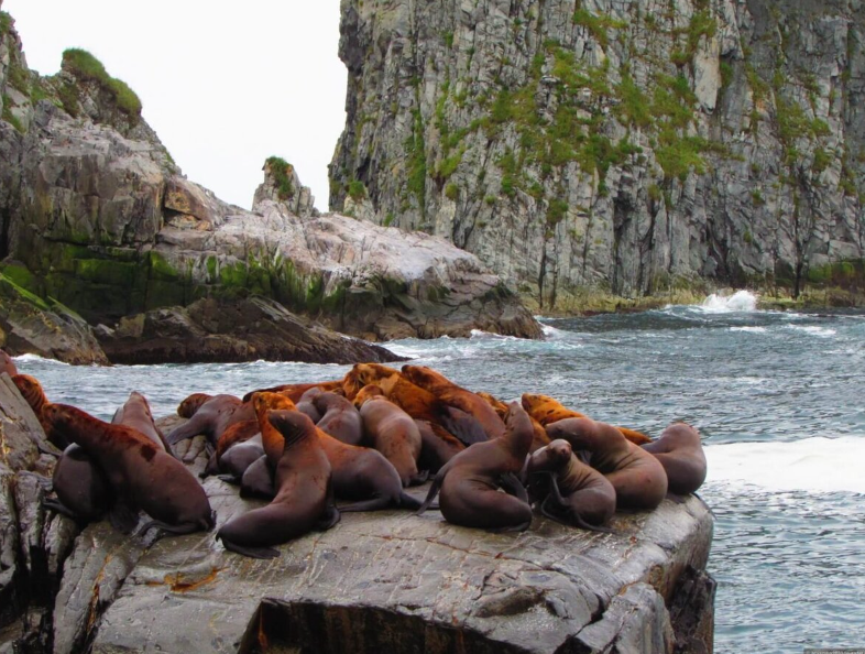 Местные скалы облюбовали чайки, сивучи и нерпы, а в прибрежных водах нередко можно увидеть косаток. Во времена Великой Отечественной войны бухта Русская была одним из пунктов, куда прибывали корабли из США, груженные техникой, оружием и продовольствием.