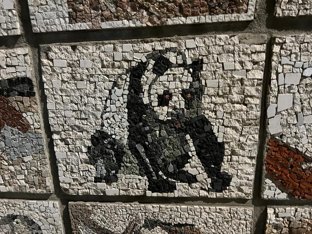 Мне кажется, что это немецкая овчарка. Или другая порода? А на соседнем мозаичном панно ворона?