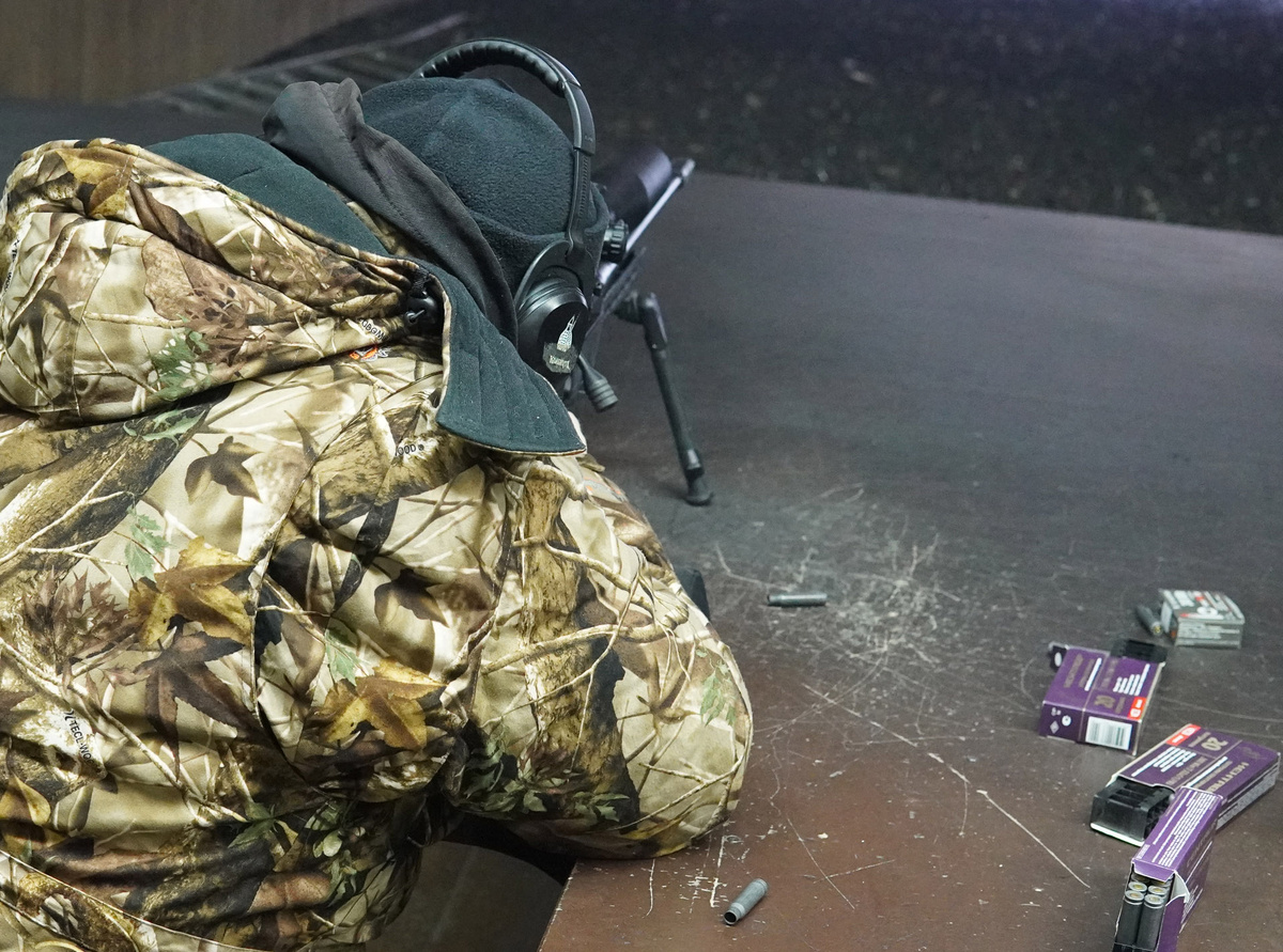 Я стрелял зимой, при температуре около 0 градусов, в полузакрытом тире. Стрельба велась в положении сидя, с упора. Перед зачётной стрельбой был сделан выстрел для прогрева ствола, между сериями были небольшие перерывы для охлаждения. На винтовке установлен прицел Vector Optics Continental5-30×56 Tactical SFP.Стрельба велась при увеличении 30х. Данная винтовка у меня простреляна под другой патрон, поэтому никаких коррекций по вертикали или горизонтали с помощью «барабанчиков» я не вводил.