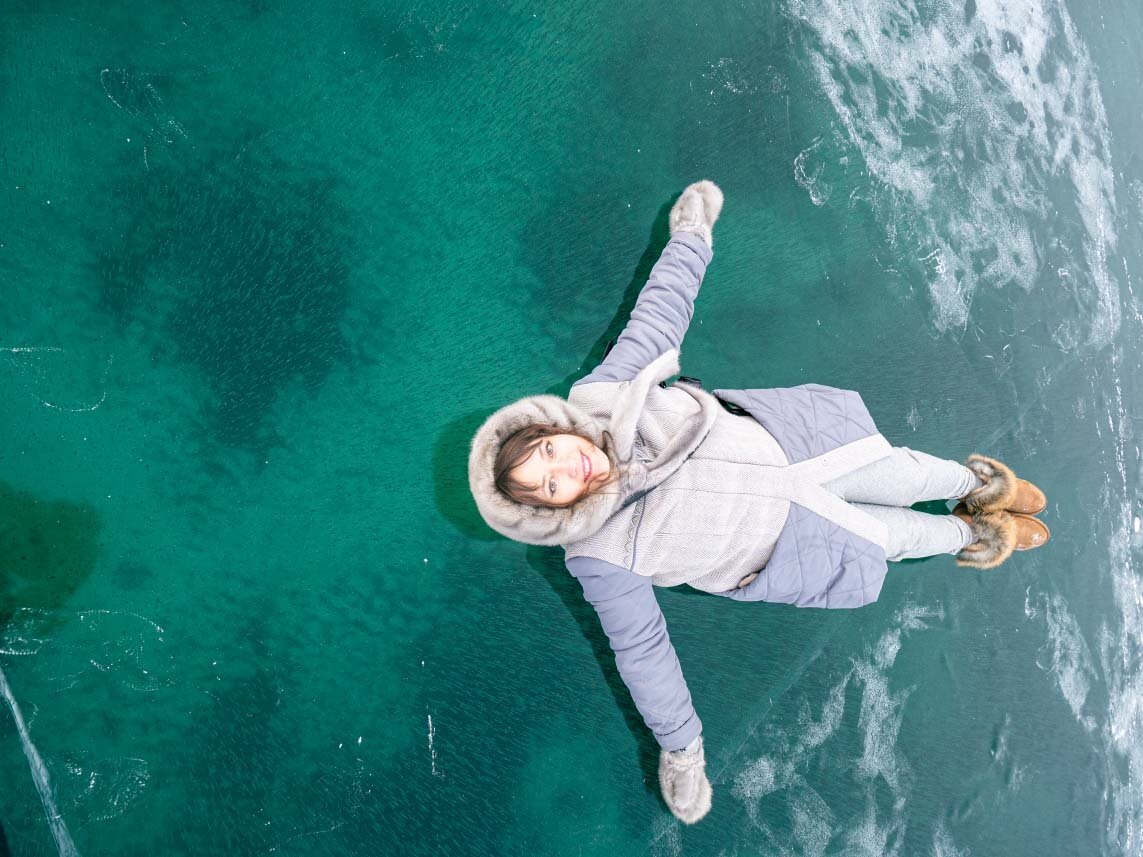 Я осторожно ступила на лед и почувствовала то самое, уже знакомое мне чувство — восторга, вперемежку с небольшим трепетом. Сердце уходит в пятки, когда в абсолютной тишине Байкал внезапно начинает «дышать», с глухим рокотом бухаясь волнами с обратной стороны льда. А уж когда раздаётся его раскатистый, словно артиллерийский взрыв, треск, то и вовсе хочется всё бросить и бежать скорее к берегу. Ступить, так сказать, на твёрдую землю.