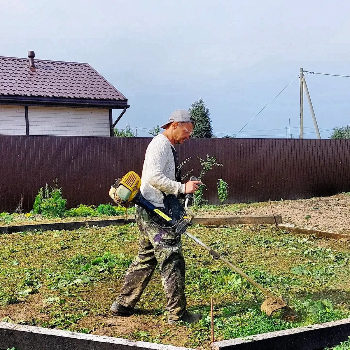 Друзья, напомню вам, что огородом и садом в нашей семье увлечённо занимаюсь только я. Поэтому все идеи и воплощения по этому вопросу тоже только мои. Я очень хотел чтобы моя теплица была не садовым парничком, а чем то интересным, необычным и даже красивым. Также очень хотелось чтобы теплица перекликалась с беседкой. А как вы наверное помните, наша беседка имеет форму восьмиугольника. Итак, теплица в форме восьмиугольника с восьмискатной крышей, уже интересно. Размер теплицы решено было сделать отталкиваясь от длинны стороны восьмиугольника, и эту длину сделали 3 метра. Таким образом, площадь теплицы составила 49 метров, ничего себе такая однокомнатная квартира. Каркас теплицы сварили из металлического профиля как и каркас беседки в свое время. Покрасили краской по металлу от ржавчины. В качестве фундамента использовали брус 100×150, обмазанный гидроизоляционной мастикой. Этой весной нам предстоит обшить каркас прозрачным поликарбонатом толщиной 6 мм. Таким образом, крыша и стены буд