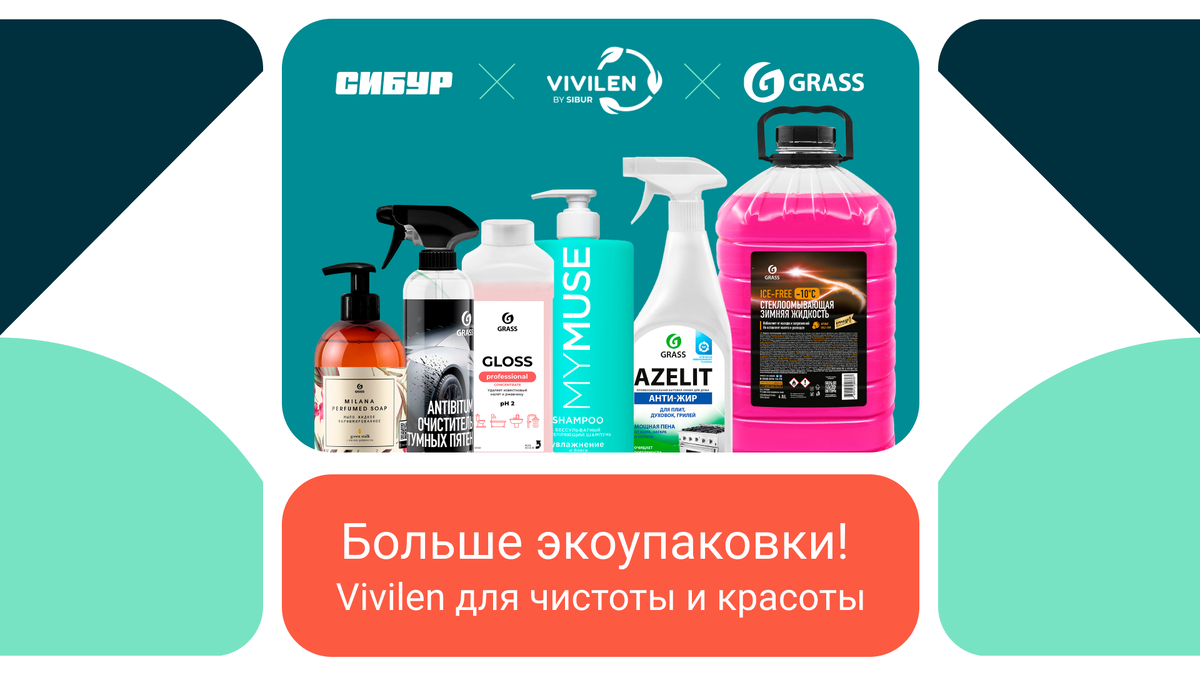 Автохимия позеленеет… Как и средства для уборки, и косметика. Скоро вы сможете положить в корзину целый набор продуктов в «зеленой» упаковке из гранул Vivilen с добавлением переработанного пластика до 25%. Этот шаг к экономике замкнутого цикла мы сделали вместе с компанией GRASS, крупнейшим производителем косметики, авто- и бытовой химии. Впервые на российском рынке производитель будет выпускать свои товары в экоупаковке из гранул Vivilen rPE с вовлечением вторичного полиэтилена. Также планируется использовать ПЭТ-упаковку из гранул Vivilen rPET — для ее производства применяют использованные пластиковые бутылки. А еще вместе с GRASS мы будем развивать раздельный сбор отходов: в торговых точках появятся экостанции для сбора пластика, из которого мы получим новые гранулы Vivilen — а из них снова появится экоупаковка для продуктов GRASS. Используя гранулы Vivilen, мы создаем более экологичную упаковку для нашей продукции и укрепляем направление, связанное с ответственным обращением с отхо