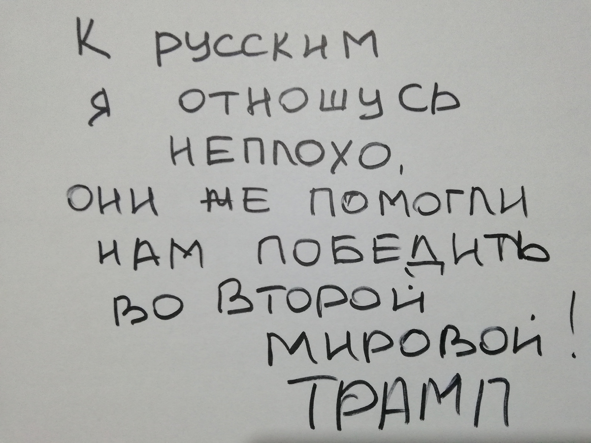 "К русским я отношусь неплохо, они же помогли нам победить во второй мировой"... Как вам? С барского плеча новый президент Америки снизошел. Американцы попроще уверены, что победили США, без всякой помощи. Кое - кто уверен, что Великобритания. Иногда в опросах называли даже Германию. Про Советский Союз мало кто вспоминает. И на памятные мероприятия по случаю 80-й годовщины освобождения концлагеря Аушвиц - Биркенау в Освенциме российскую делегации опять не пригласили. Как будто бы и не советские солдаты освобождали нацистский концлагерь. Ещё немного, и на голубом глазу, поляки будут рассказывать, как бравые американские парни, сверкая белозубой улыбкой, ломали ворота Освенцима. Говорят и Нетаньяху не приедет, в розыске он у Международного уголовного суда. А немцев - то позвать не забыли? Без них и мероприятий - то не было бы... Делегация из Италии будет непременно, из Румынии... Пройдёт каких - нибудь 100 лет и новые историки "выяснят", что ничего такого в этих концлагерях и не