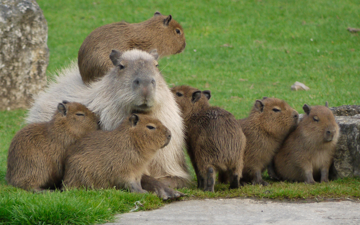 - Крепкие зубы: У капибар, как и у других грызунов, зубы продолжают расти на протяжении всей жизни. Они должны грызть твердые предметы, чтобы стирать зубы.