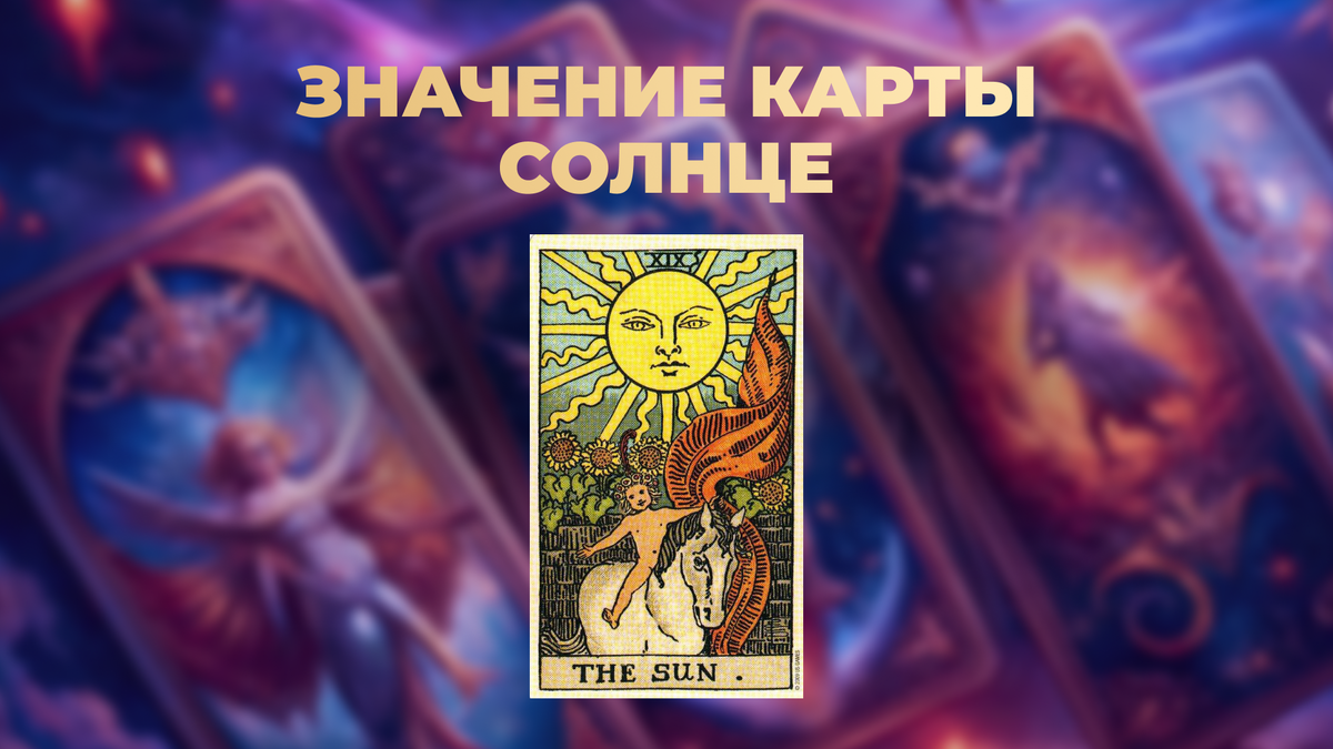 Разберем этот аркан подробнее ⬇️ Герой на карте изображен в виде ребенка, потому что он помолодел, освежился, обновился и зарядился новыми силами. Состояние «Я на коне» — радость, счастье, успех и победы. Позади мы видим подсолнухи — это символ оптимизма и жизнерадостности 🌻 Это карта энергичности, активности, открытости, кармических подарков от Вселенной, солнечной полосы в жизни, исполнения желаний. Это может быть, например, беременность, рождение детей и осуществление задуманных планов. 👨💻В работе карта Солнце приносит радость, деньги, признание и новые победы. Это энергия, активность, лидерство, которые дают отличный результаты и востребованность 🔝 Также карта показывает повышение и улучшение условий на работе – одним словом, процветание и счастье. ♥️В отношениях, собственно, также. Плоды, процветание, счастье. Это может быть долгожданная свадьба, рождение детей. Чувство счастья и радости, но не все так просто. Чувства по этому аркану могут быть и к себе любимому. Человек – на