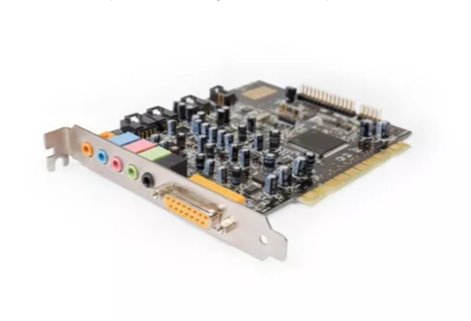 Это интегрированный в материнскую плату аппаратный кодек (чипсет) или отдельная плата расширения для создания звука в компьютере. Звук можно услышать через устройства вывода данных. Все современные форматы записи аудио используют цифровое представление. Данные на CD, Blu-ray, mp3- файлы хранятся в цифровом формате. Звуковые карты используют цифровой аналоговый преобразователь для преобразования цифрового кода (двоичного) в аналоговый сигнал. Аналоговый сигнал состоит из тока, напряжения и заряда. Сигнал выводится через устройство вывода данных (звуковые колонки или наушники). Аналого-цифровой преобразователь необходим для преобразования аналогового звука (например, от микрофона), поступающего на ПК в цифровой. Установка звуковой карты в виде платы производится в разъемы PCI или PCIe. Такая звуковая карта имеет интерфейс в виде различных портов вывода и ввода звука на задней панели корпуса компьютера. В зависимости от строения корпуса, порты могут быть по бокам и в верхней его части