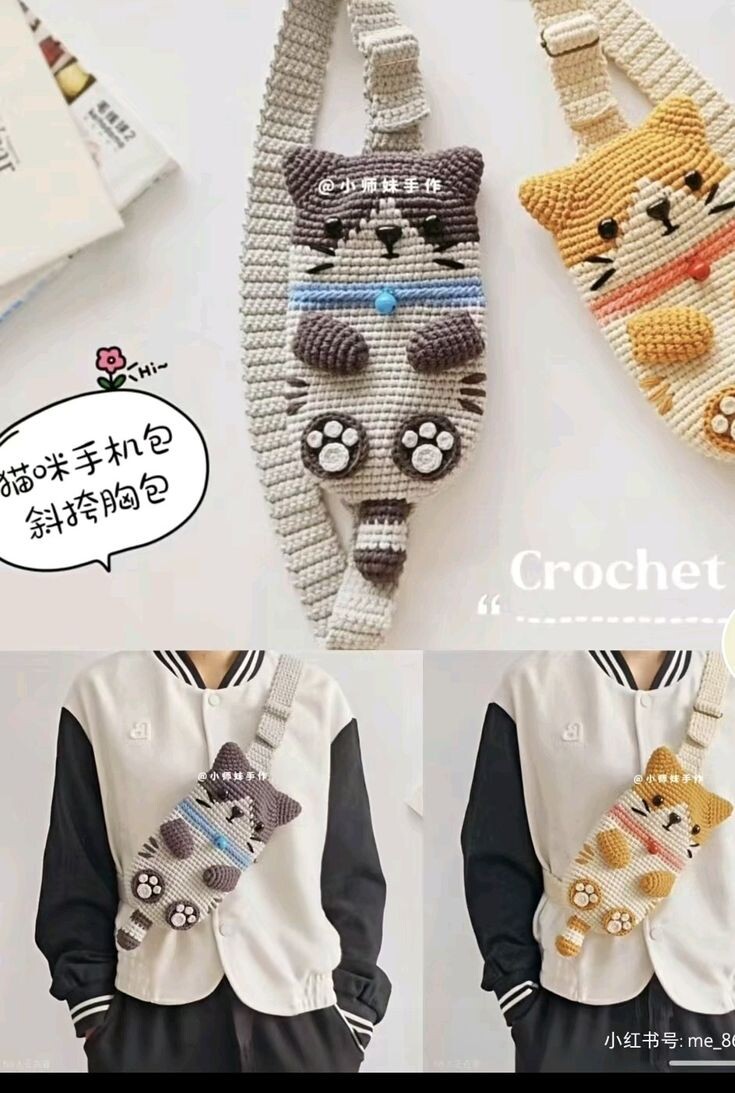 Не секрет, что китайские рукодельницы по уровню своей фантазии и таланта очень похожи на русских. Часто можно увидеть схемы вязания на китайском. Благо хоть язык схем везде одинаков. В принципе и описание довольно легко расшифровать, если запомнить перевод некоторых иероглифов. Я люблю подглядывать за работами мастеров из Поднебесной! Кот - сумка. Идеальное решение для телефона. Вяжется довольно просто, по кругу. Вот котики покрупнее. Схему такого котика я в интернете не нашла. Но, честно сказать, я против 100% плагиата. Поэтому в своих статьях я стараюсь вдохновлять идеями. А там уж два варианта или найти описание на просторах интернета или придумать самому, что гораздо интересней, на мой взгляд. А вот как выглядит сумочка спереди и сзади, кстати, такие работы можно купить на Ярмарке Мастеров! И в заключение еще парочка кошачих идей: Желаю удачи и вдохновения! Статьи на похожую тему: