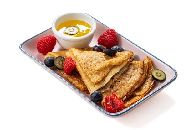 Ингредиенты порции 8 Пшеничная мука 300 г Молоко 500 мл Куриное яйцо 4 штуки Соль ½ чайные ложки Сахар 50 г Сливочное масло 160 г Кипяток 400 мл 1.Подготовить все ингредиенты. 2.Растопить сливочное масло в сотейнике. 3.Продолжать нагревать масло на среднем огне, пока оно не приобретет светло-коньячный оттенок. Процедить карамелизованное масло через марлю, чтобы избавить от подгоревших вкраплений. 4.В большой миске взбить яйца, сахар, соль и 60 грамм растопленного остывшего карамелизованного масла. 5.Влить молоко, продолжая взбивать тесто. 6.Постепенно частями добавить просеянную муку. 7.Вмешать в тесто кипяток, непрерывно помешивая. Готовое тесто оставить на 30 минут. 8.Хорошо разогреть блинную сковороду на огне выше среднего. Смазать ее растительным маслом. Тесто перед жаркой перемешать и вылить половник теста на сковороду, распределив по дну. 9.Жарить блин 20–30 секунд на одной стороне, затем перевернуть и жарить еще 10–15 секунд. 10Г.отовые блины складывать в стопку, смазывая ка