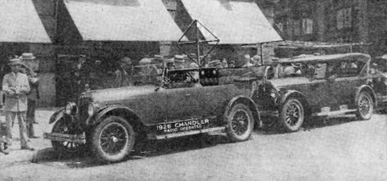Зрители, не посвященные в суть эксперимента, и правда были ошеломлены — открытый Chandler ехал по мостовой, а за рулем никого не было! Однако намёк на то, что это не совсем простой кабриолет, все-таки был: за передним диваном торчала огромная ромбовидная железная рама-антенна.