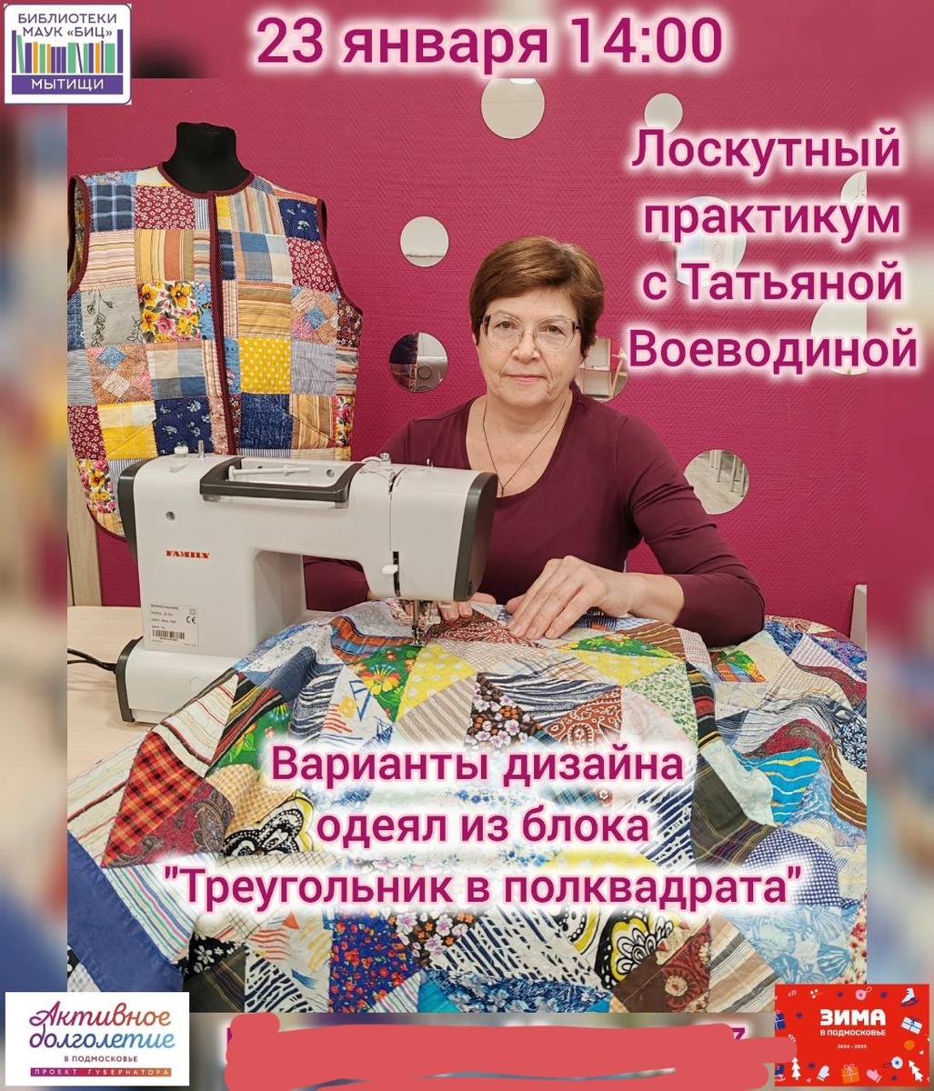 Сегодня 23 января 2025 года. Проснусь в 9-20, передача ,, модный приговор " уже началась без меня... Ждать меня не стали... Пошла на кухню, выпила стакан воды и включила телевизор. Поставила варить бульон, первый бульен всегда сливаю. На завтрак приготовила геркулесовую кашу. И сыр творожный намазала на булочку. Сварила в турке кофе. Нравится сочетание сыра с кофе. Первый бульен слила, промыла мясо и залила снова. Себе сварила тыквенный крем суп, а мужу заправила тонкой вермишелью. На второе приготовила мясо индейки с гречкой. Думаю это будет на ужин. Всё сделала... Быстренько пообедали и я поехала в клуб Долголетия. Сегодня занятие начинается в 14:00 часов. Кружок лоскутного шитья Один из первых блоков, который осваивает начинающая Рукодельница, знакомясь с лоскутным шитьем, это блок треугольник в полквадрата или HST (это базовый элемент, полное название Half Square Triangle — квадрат из двух треугольников). Сегодня практиковались в создании различных дизайнов одеял из