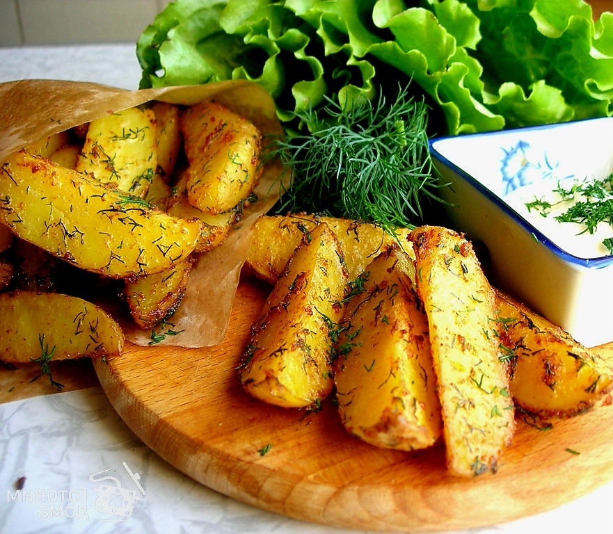 Картофель "Айдахо" - это популярное и очень вкусное блюдо. Он получается хрустящим и ароматным, а специи и зелень придают ему пикантности. Такой картофель можно подать и в качестве самостоятельного блюда, а можно в качестве гарнира к мясу или рыбе. Продукты: В этом рецепте картофель запекается в кожуре, поэтому лучше выбирать молодой картофель. Клубни хорошо вымыть и каждый разрезать пополам вдоль. Затем каждую половинку разрезать еще на несколько кусочков примерно одинакового размера. Поставить кастрюлю с водой на огонь и довести до кипения. Подсолить воду и варить картофель в течение 3-5 минут. Вынуть картофель из воды и выложить на бумажное полотенце. Обсушенный картофель будет лучше запекаться. В оливковое масло добавить соль, перец, паприку, зелень и перемешать. Добавить маринад к картофелю и аккуратно перемешать. Оставить картофель промариноваться минут на 10-15, чтобы он впитал аромат специй. Выложить ломтики картофеля на противень, застеленный пергаментом. Запекать в духовк
