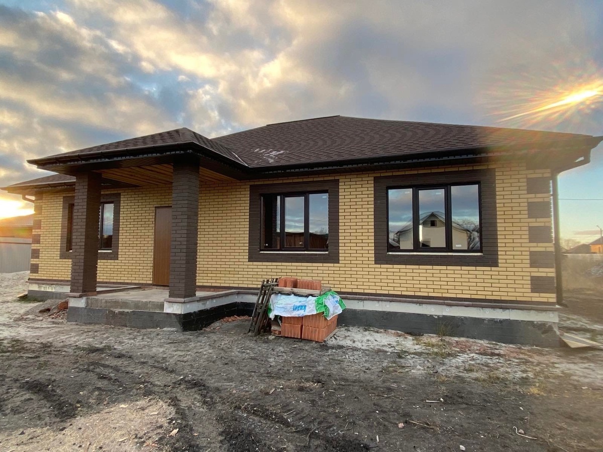 Это базовая версия проекта, с облицовкой кирпичом и стандартным размером окон. На наш взгляд, смотрится очень неплохо, в реальности интересней, чем на визуализации:)