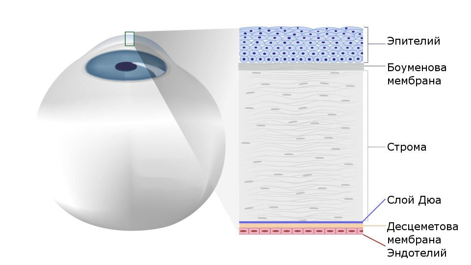 А вы знали, что ученые до сих пор находят неизвестные органы в нашем теле? Естественно, третью почку или вторую печень врачи бы не проглядели. Но наше тело — тонкий механизм, настройкой которого занимаются крохотные, почти незаметные «детали». Это серия постов об органах, которые открыли совсем недавно. Слой Дюа — это слой роговицы, изменивший представление об устройстве глаза. Его обнаружили в 2013 году. Почему так поздно? Потому что слой Дюа микроскопический! Его толщина составляет всего 10 микрон! Чтобы вы понимали, насколько он тонкий — толщина стромы — основной части роговицы — составляет 450 микрон. А 1 мм = 1000 микрон. При этом жесткость слоя Дюа нехилая: она выдерживает давление в 150-200 килопаскалей. Это сила, равная двум килограммам на квадратный сантиметр. Новый слой помог врачам понять принцип генезиса некоторых заболеваний глаз. Например, водянки роговицы — её вы и видите на фото ниже. Во время водянки строма опухает, а роговица заливается. Теперь считается, что именно с