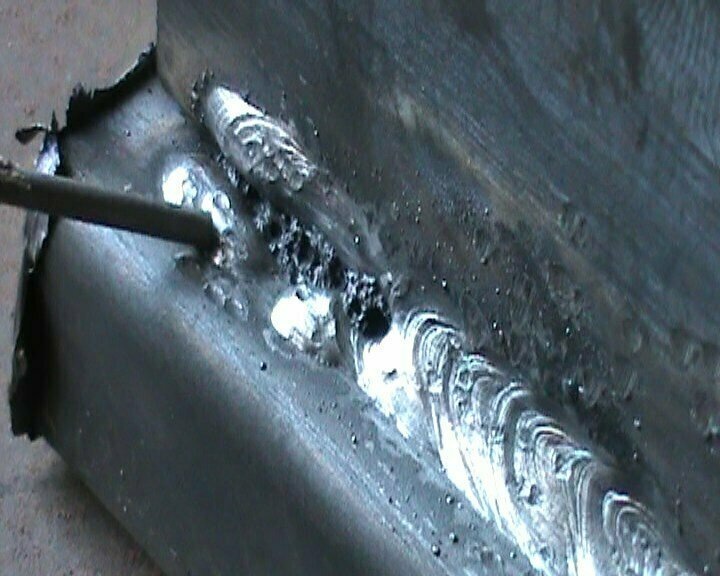 Начинающим всегда говорят одно и тоже, главное научитесь различать, видеть при сварке под горящим электродом где там металл, а где шлак. Зачем этот навык нужно развить? При сварке электродом нужно научиться заполнять, смачивать свариваемые кромки металла именно расплавленным металлом. Да, в сварочной ванне шлак накрывает как крыша этот жидкий металл, поэтому нам не только нужно уметь видеть где металл и где шлак, но и управлять процессом так чтобы шлак не залез вперёд расплавленного металла под электродом. Тогда будет картина после сварки как на фото выше-непровар и зашлаковка. Так первым делом учимся видеть это различие, а потом уже управлять электродом так чтобы не пускать шлак впереди батьки, то есть расплавленного металла. Подобных советов и видео уже много накопил интернет, можно смотреть и смотреть. Но вот как информация лучше всего запоминается? Метод сравнения. Было холодно, зашел в помещение там тепло. Можно сколько угодно рассказывать что такое тепло, но пока сам не ощутил