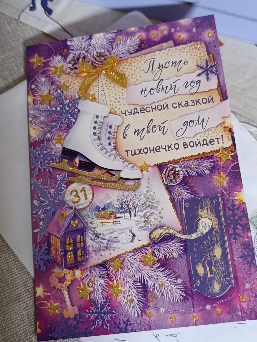 Добрый день всем! Сейчас наступила спокойная и безмятежная пора. Праздники позади, а до садовых работ ещё далеко. Хорошему настроению способствуют всякие приятности. Например, вчера из почтового ящика я вынула ещё одно письмо. Почта наконец соизволила доставить чудесное новогоднее поздравление от моей коллеги и рукодельницы Анны Баба ЯгаПрекрасная. А родственники из поездки привезли по заказу тарелочки. Я была в этих городах, но тарелочки не купила, сейчас пробел восполнен. А ещё- в подарок вкусняшку. Настоящее белорусское сало. В зимнюю пору самое нужное и вкусное лакомство.. Наконец убрала ёлку и её место опять заняла этажерка. Все -таки всему свое время, так свободно и легко стало без неё. Тем более весна даёт о себе знать, проснулись гиацинты, посаженные в декабре. Они стояли на стратификации в холодной пристройке и всё получилось, сейчас уже видны цветоносы. Сделала, наконец, задумку, которую очень долго собиралась осуществить, но не было подходящей рамки. Фото с самыми родны