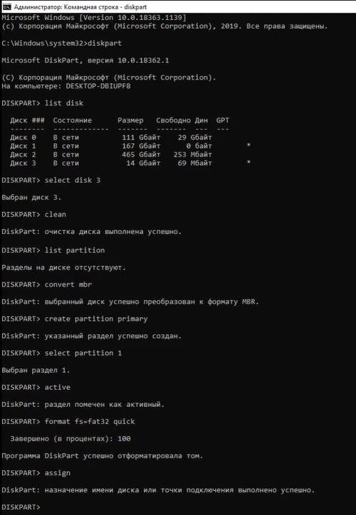 Так как после установки FydeOS (такое возможно и после Linux) я столкнулся с проблемой, что после форматирования флешки, она потеряла объём, решил выложить инструкцию по восстановлению её объёма. Пример процесса восстановления на фото 1. Откройте командную строку от имени администратора 2. Введите команду: diskpart 3. Введите команду: list disk 4. Выберите свой диск командой: select disc 3 (возможно, у вас будет другой номер. Вводите номер напротив нужного вам накопителя) 5. Далее введите: clean 6. После завершения очистки введите: list partition 7. Затем введите: convert mbr 8. После этого введите: create partition primary 9. Введите команду: select partition 1 10. Введите: active 11. После введите: format fs=fat32 quick 12. И последняя команда: assign Всё, ваша флешка как новая