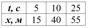 Тело движется вдоль оси Ox с постоянным ускорением. Прибором были зафиксированы три координаты нахождения тела на оси и моменты времени нахождения тела в этих координатах. Необходимо определить, в какой момент времени тело находилось в координате x=-12,2 м. Тело движется с постоянным ускорением, значит движение равнопеременное. Уравнение равнопеременного движения: Ни одного кинематического параметра неизвестно. Придется составить три уравнения с указанными координатами и временами: Вычтем из уравнения (2) уравнение (1): Не очень красивое число возле ускорения. Домножим уравнение на 2/5: Выразим скорость: Теперь повторим операции - вычтем из уравнения (3) уравнение (2): Домножим на 2/15: Выразим скорость: Приравняем выражение (4) и выражение (5): Подставим найденное ускорение в (5) выражение (можно и в четвертое): Подставим найденные ускорение и начальную скорость в уравнение (2): Теперь мы знаем все кинематические параметры. Можно составлять уравнение движения: Нам необходимо найти вре